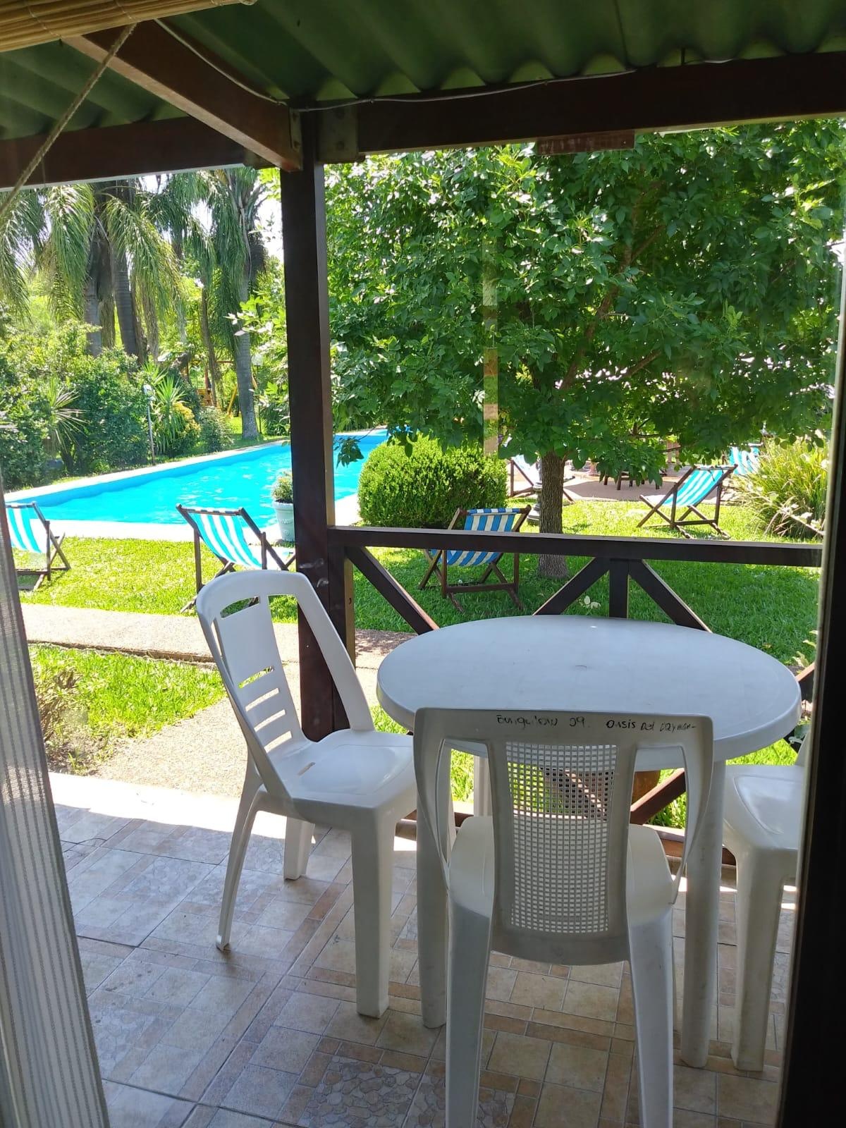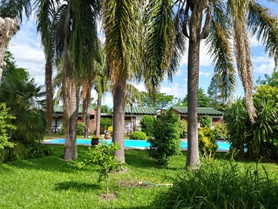 parque arbolado y juegos para niños, la piscina para adultos y para niños